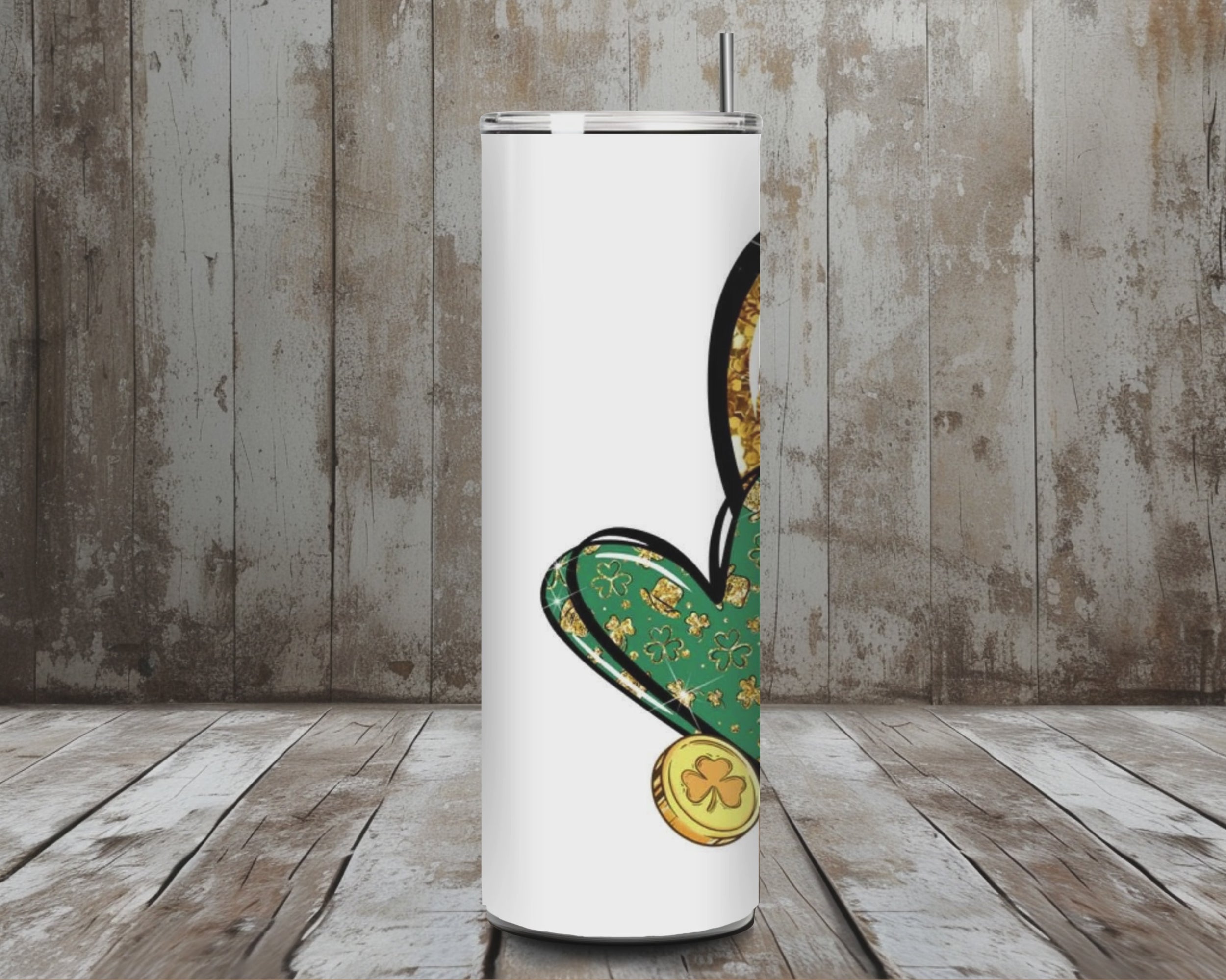 20 oz Lucky Glitter Shamrock & Gold Heart St. Patrick’s Day Tumbler – Lid + Stainless Steel Straw